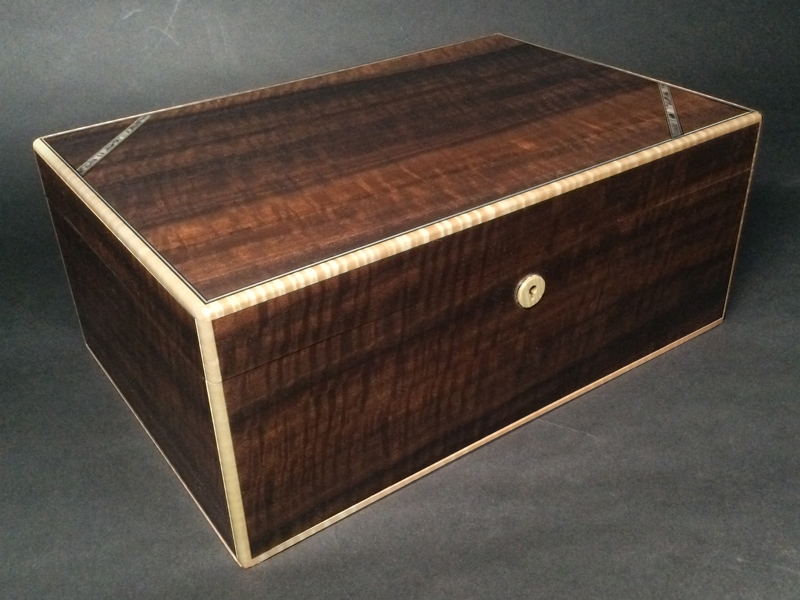 Model #85CBronzeThis is the same wood as the Beeswing Eucalyptus we use which comes from Australia. What we are using here has been "fumed" or smoked to a dark brown color. Fuming/Smoking is a new process that is being used to enhance the coloring and to highlight the figure in a variety of different woods. When we obtained this fumed Eucalyptus from our supplier, we thought it could be made even more beautiful by using a unique, penetrating, yellow stain. We experimented with several types and colors of stain to arrive at the bronze color featured here. It pleases us to be able to offer this new version of Beeswing Eucalyptus. Part of the joy of woodworking is experimenting with woods like these in order to enhance their natural beauty.
